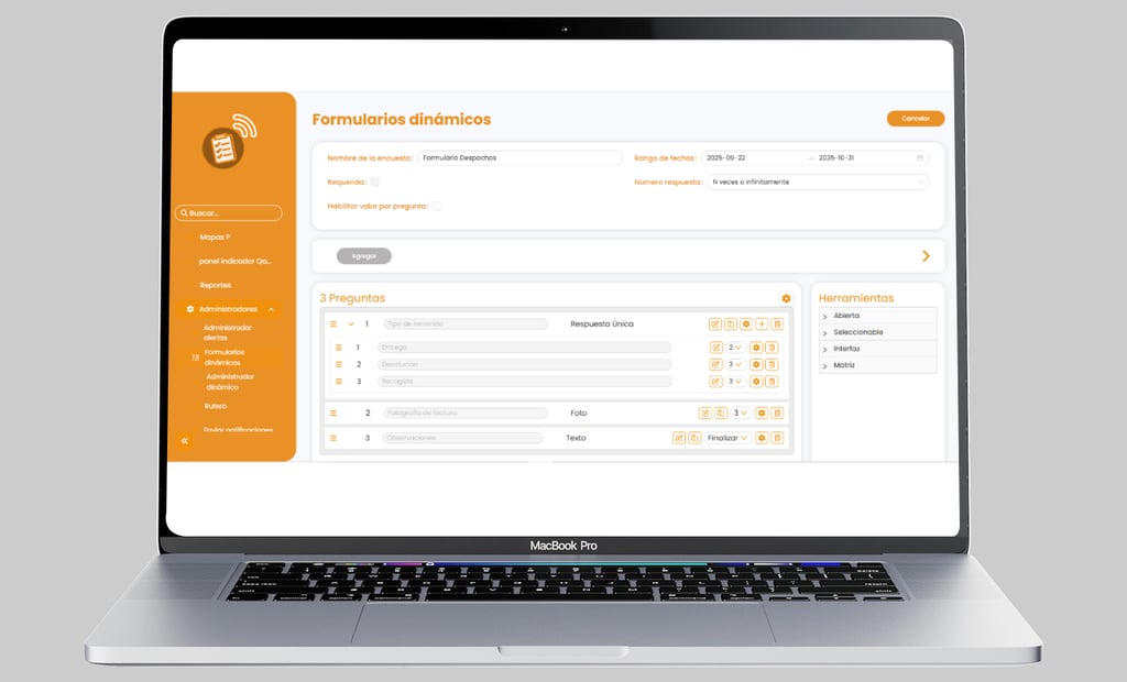 Gestiona tus equipo de trabajo en campo, obteniendo datos e información en tiempo real, facilitando la toma de decisiones y la optimización de los tiempos en tu operación comercial y logística.