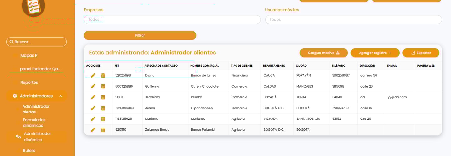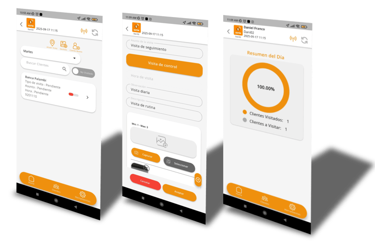 En la versión móvil podrás gestionar todo la actividad en campo y el manejo de tus clientes para la operación: