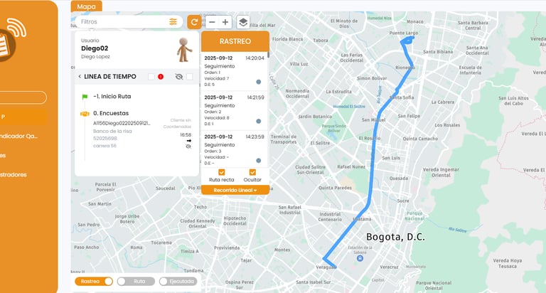 GEO: Ubica a los trabajadores en Campo, gestiones de entrega y recorridos, mediante la herramienta de geolocalización.